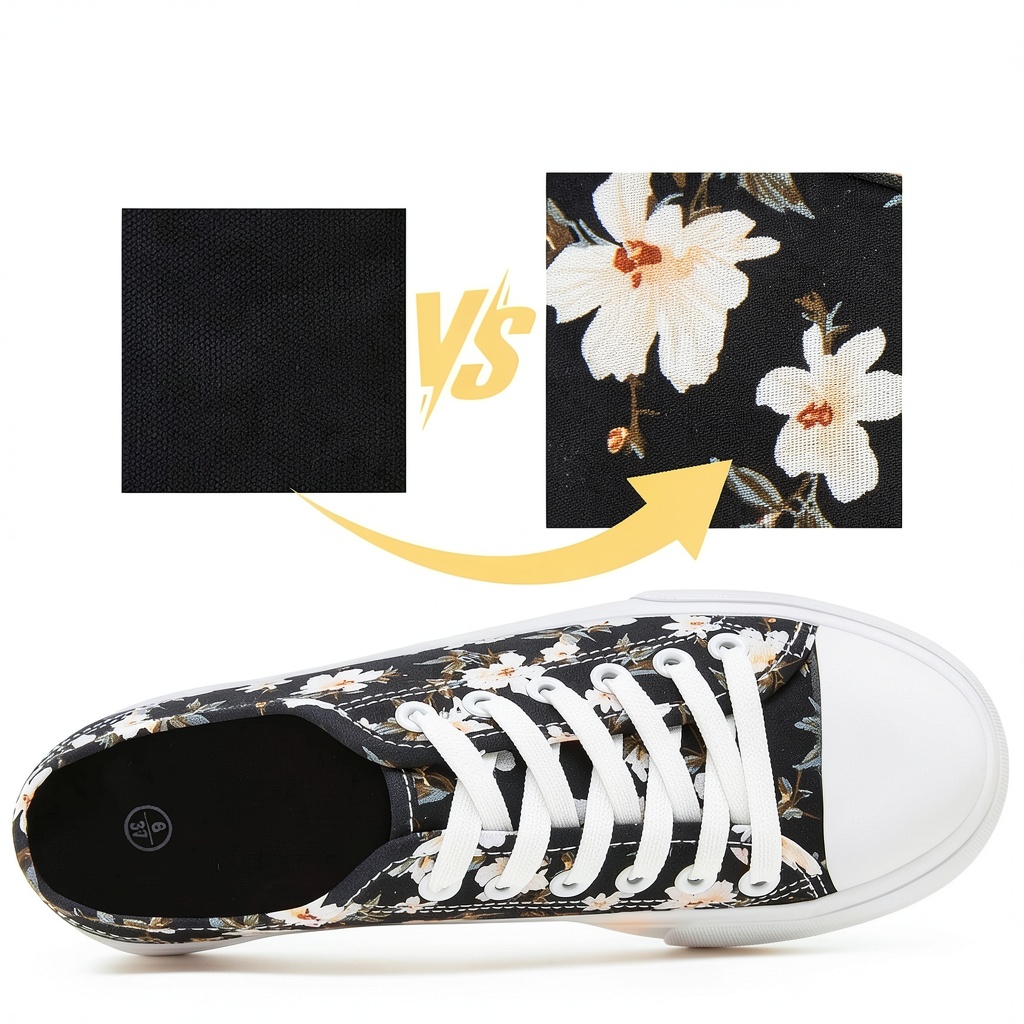 The sneakers are made from high-quality canvas for the upper and feature a comfortable inner lining, along with a durable rubber sole for non-slip performance.