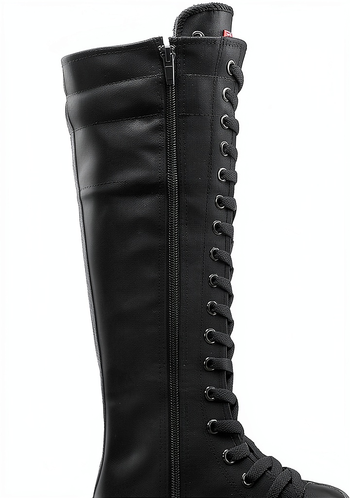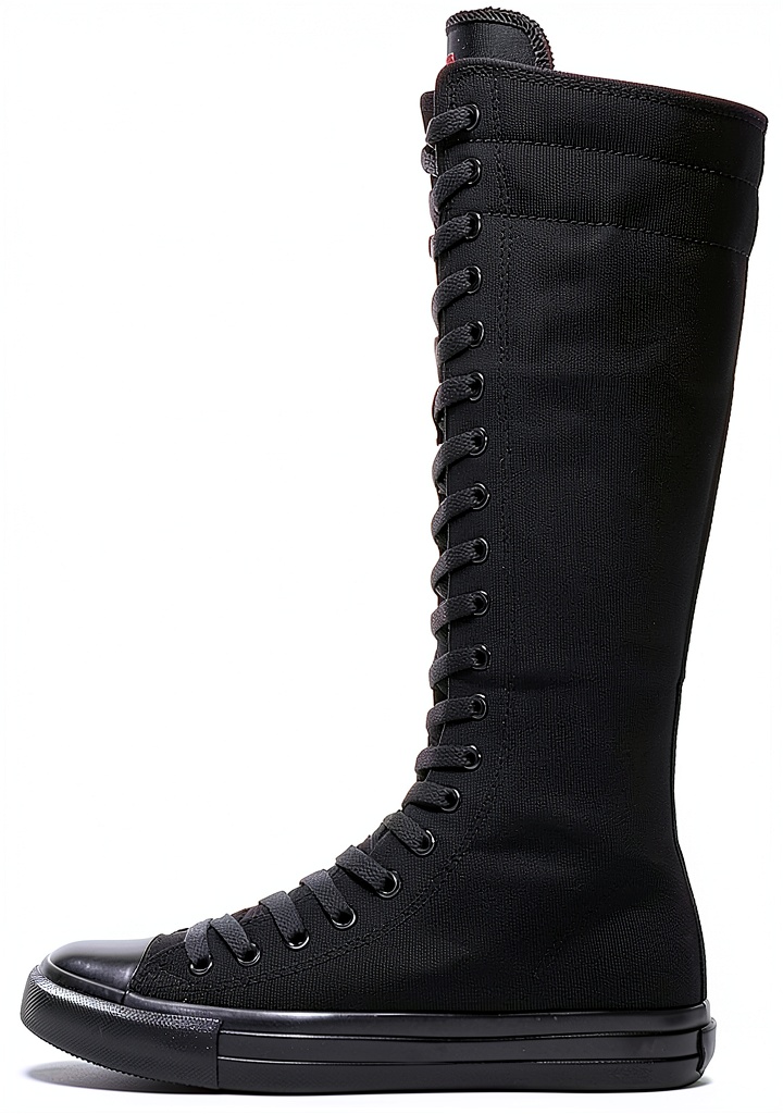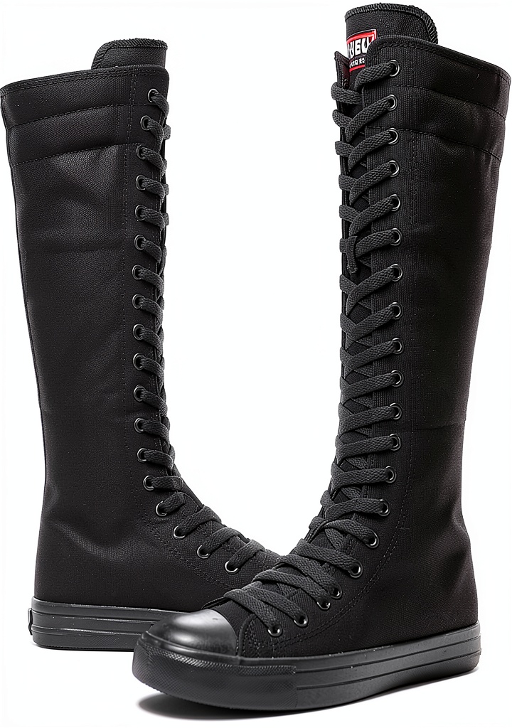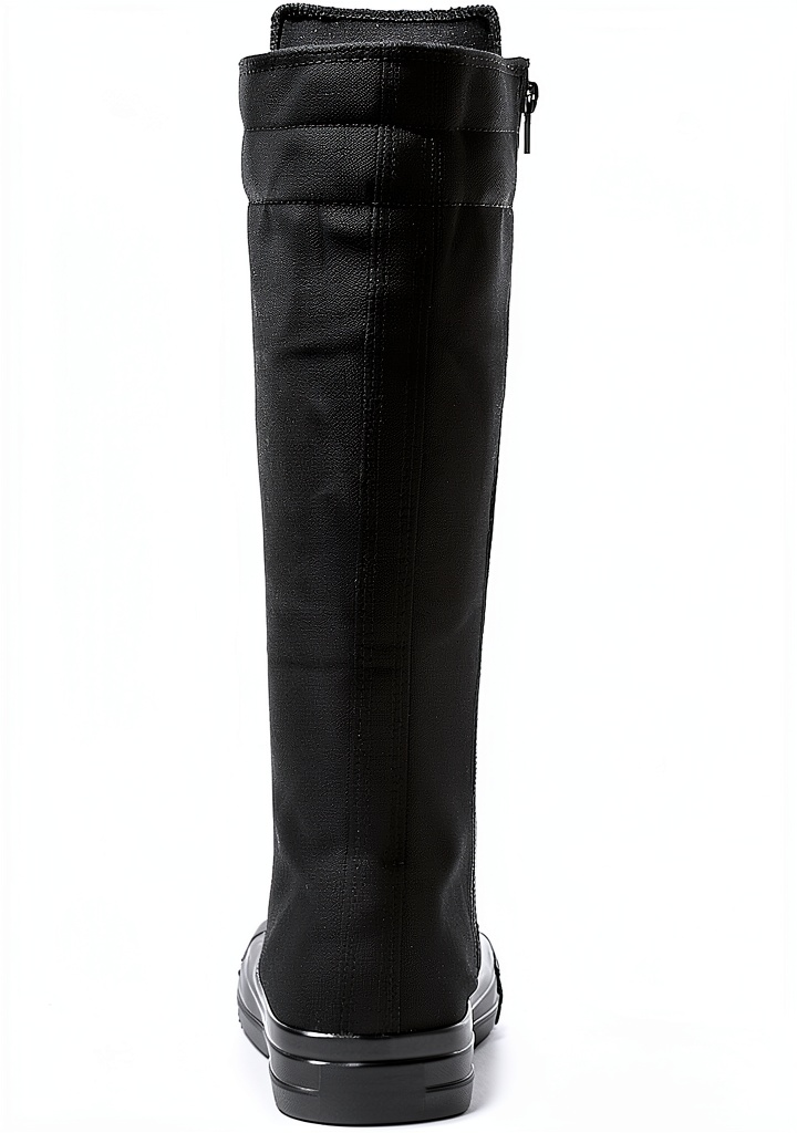 Momuk womens canvas boots are crafted for durability and everyday comfort, featuring a rugged rubber outsole that provides excellent anti-slip protection and resists deformation. The toecap and heel are reinforced with rubber mold structures for enhanced foot safety. Available in classic black and white solid colors, these boots include a convenient side zipper for easy wear and removal, eliminating the need to untie laces. Designed with a knee-high style, they suit various casual and semi-formal occasions, backed by a manufacturer warranty for added peace of mind.