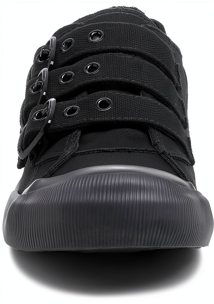 Rocket Dog women’s sneakers are designed for everyday comfort and style, featuring a durable black canvas upper that resists wear and tear. The model JOLISSA includes three functional side buckles, allowing for an adjustable and secure fit. With a rubber sole for traction and a plush foam insole, these sneakers provide cushioning and support. Weighing only 10 ounces, they are lightweight and ideal for extended wear. Available in sizes from 5.5 to 12, in black and black/black foxing color options, these sneakers cater to various preferences and ensure a reliable fit for daily use.